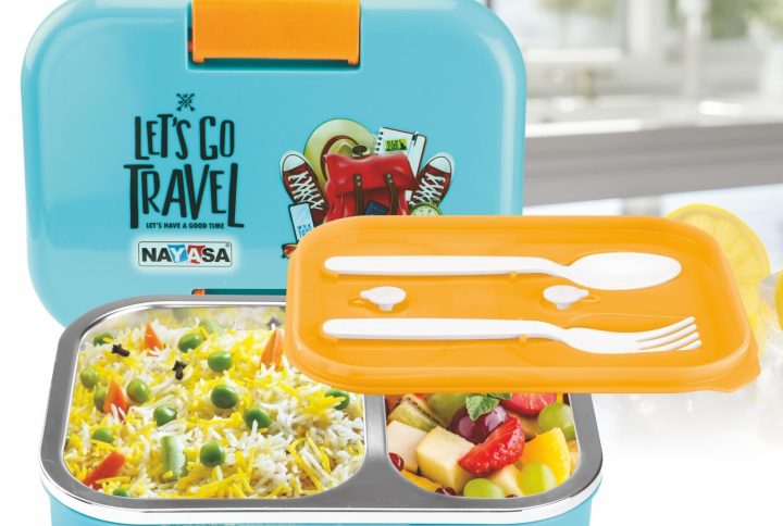 Nayasa Marco Lunch Box , Stainless Steel Inner , Leakproof , Durable ,Perfect for School Kids , Partition 2 Containers Lunch Box , Pack Of 1, Grey