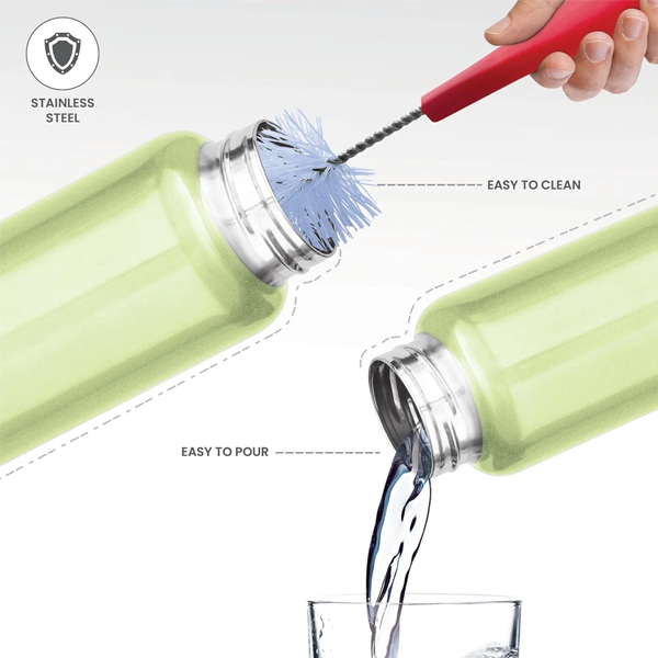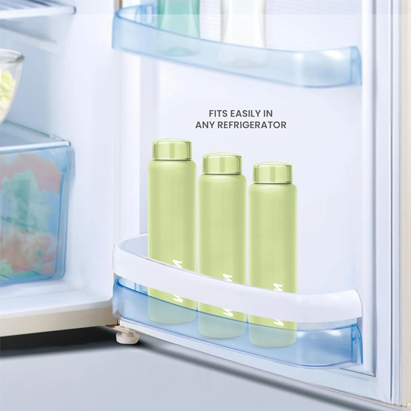 Single wall fridge bottle with inside outside stainless steel, which is rust free. Convenient size fits in the side pocket of bags which you can carry for school, trekking or office, car bottle holder etc
