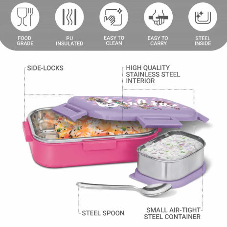 – Comes with a small airtight steel container, spoon, and vibrant prints