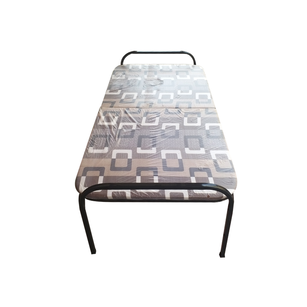 Folding Metal Bed with Mattress Top Single Layer Foam