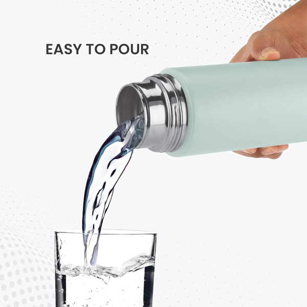 - This bottle is provided with an ergonomic lid and is a combination of comfort, safety and style.