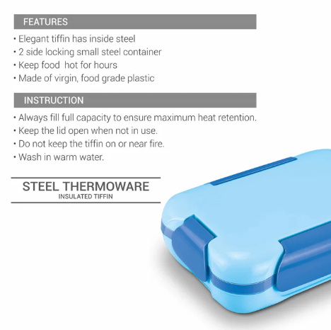 – It has an insulated design, side locks, and a stainless steel interior to keep food hot.
