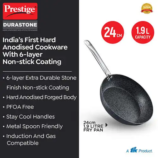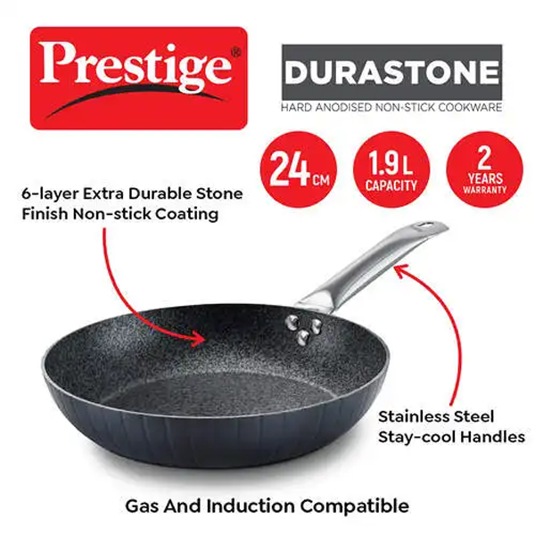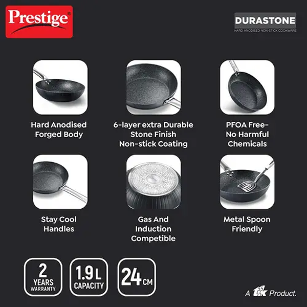 Prestige Durastone Hard Anodised 6 Layer Non-Stick Fry Pan, (24 cm, 1.9 Litre) (Black)