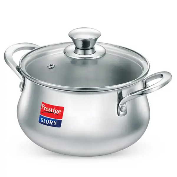 Elegant design and high performance come together with the new Prestige Glory stainless-steel cookware, that gives you added durability with a heavy thick gauge, impved performance, and long-lasting looks. This cookware comes with Unique Triply Bottom, that ensures your food cooks fast and fries evently. Furthermore, the toughened glass lid is durable and heat resistant, making this cookware an elegant addition to you kitchen. This cookware is also oven safe & induction compatible, making it truly versatile.