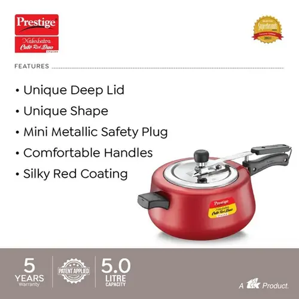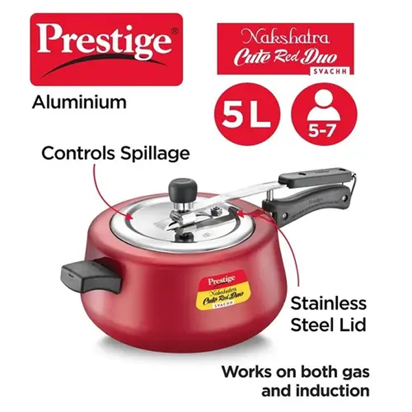 Prestige Nakshatra Cute Duo Svachh Aluminium Spillage Control Pressure Cooker, 5 L (Red)