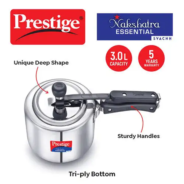 Prestige Nakshatra Essential Svachh Stainless Steel Pressure Cooker 3.0 L