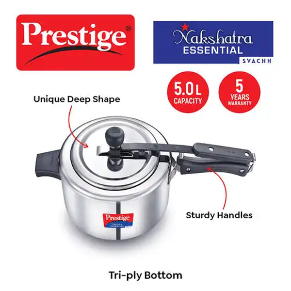 Prestige Nakshatra Essential Svachh Stainless Steel Pressure Cooker 5.0 L