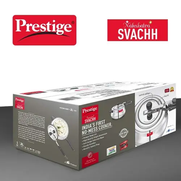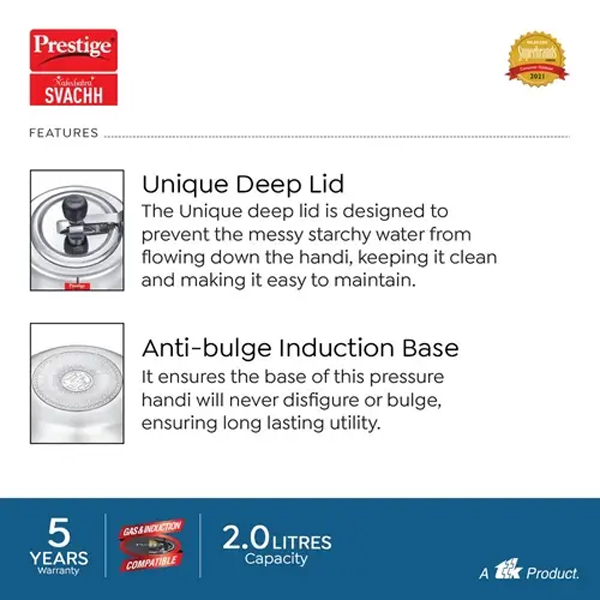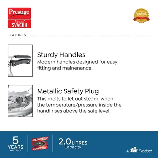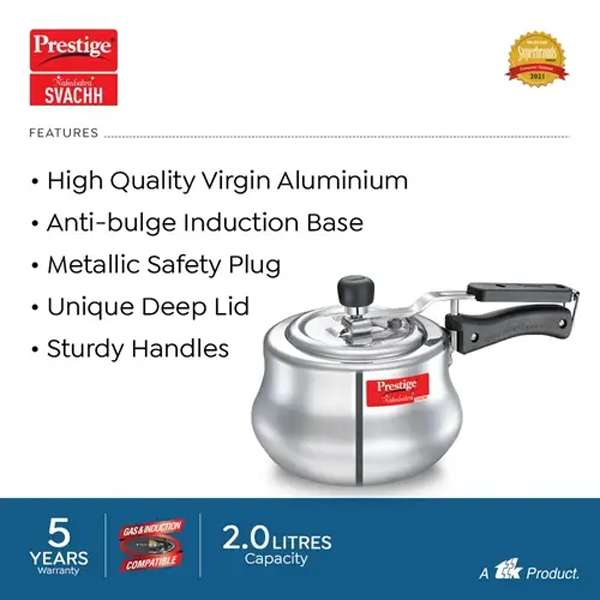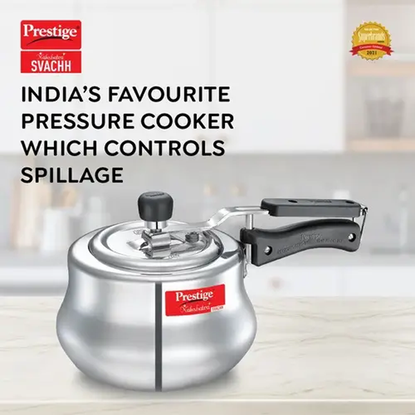 Prestige Nakshatra Plus Svachh Aluminium Spillage Control Handi Pressure Cooker, 2 L (Silver)