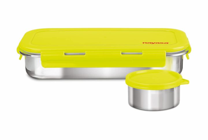 Nayasa Eco Roti Lunch Box Big- 800 ml, Stainless Steel Kids Lunch Box with Four Side Clip and One Round Container, Leakproof, Light Weight, Ideal for Kids & Adults, Red