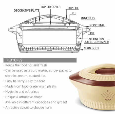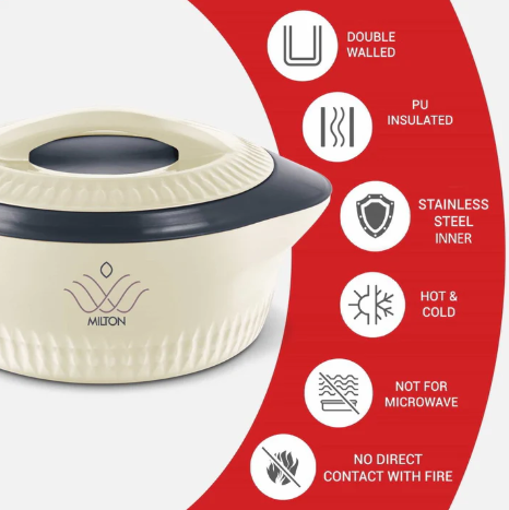– The double-walled inner stainless steel casserole ensures food stays hot and fresh.